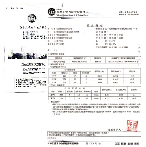 - Taiwan Electrical Research and Testing Center registration number: EC20110154D.
